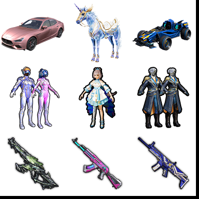 适配系统:安卓 粉色时装数:9 特效枪数量:12 账号类型(腾讯):QQ 载具皮肤:4 套装数量:229 分销起租时长:1 枪皮数量:335